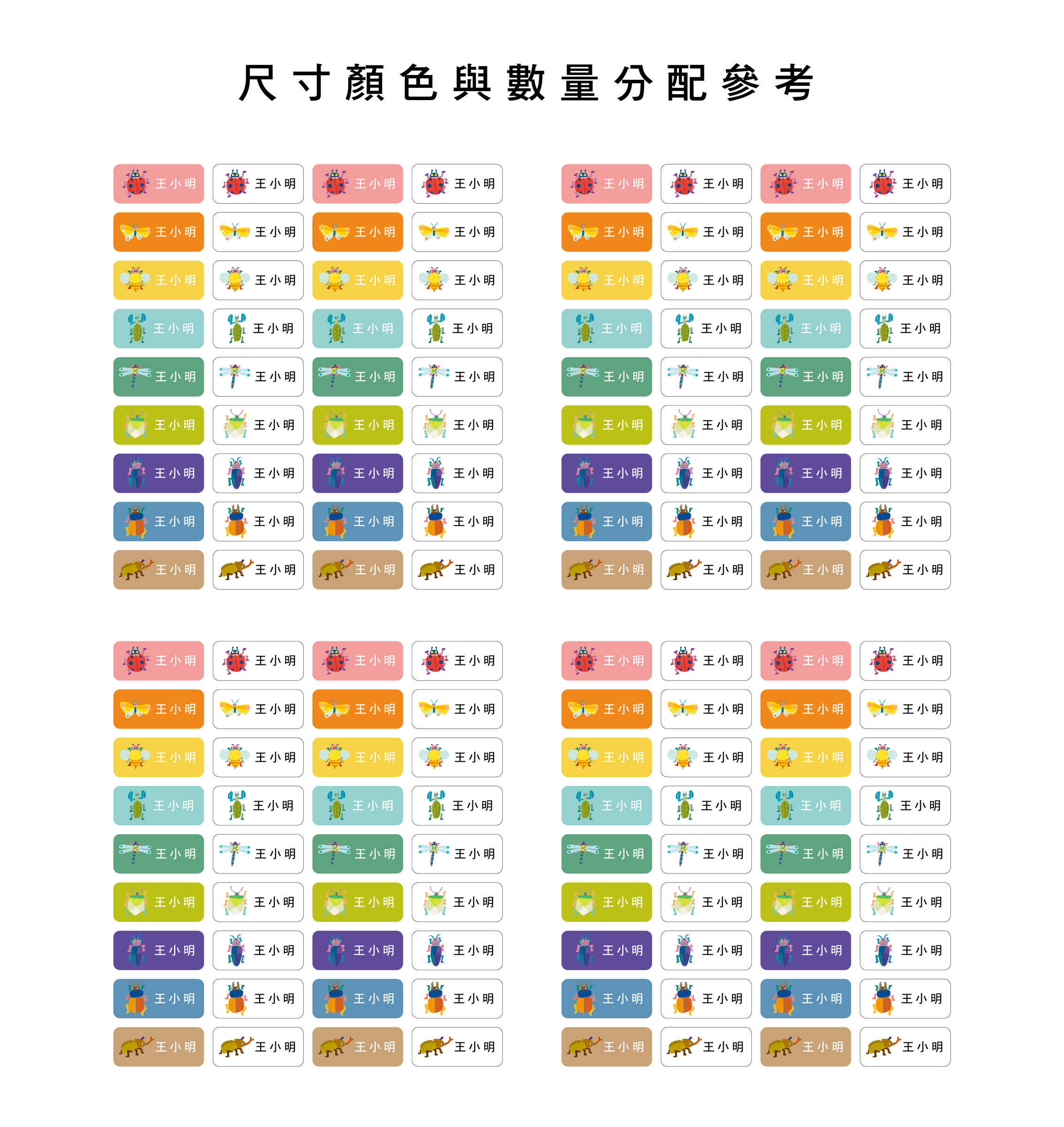 例如A5恐龍-王小明,A6昆蟲-黃小美...以此類推,